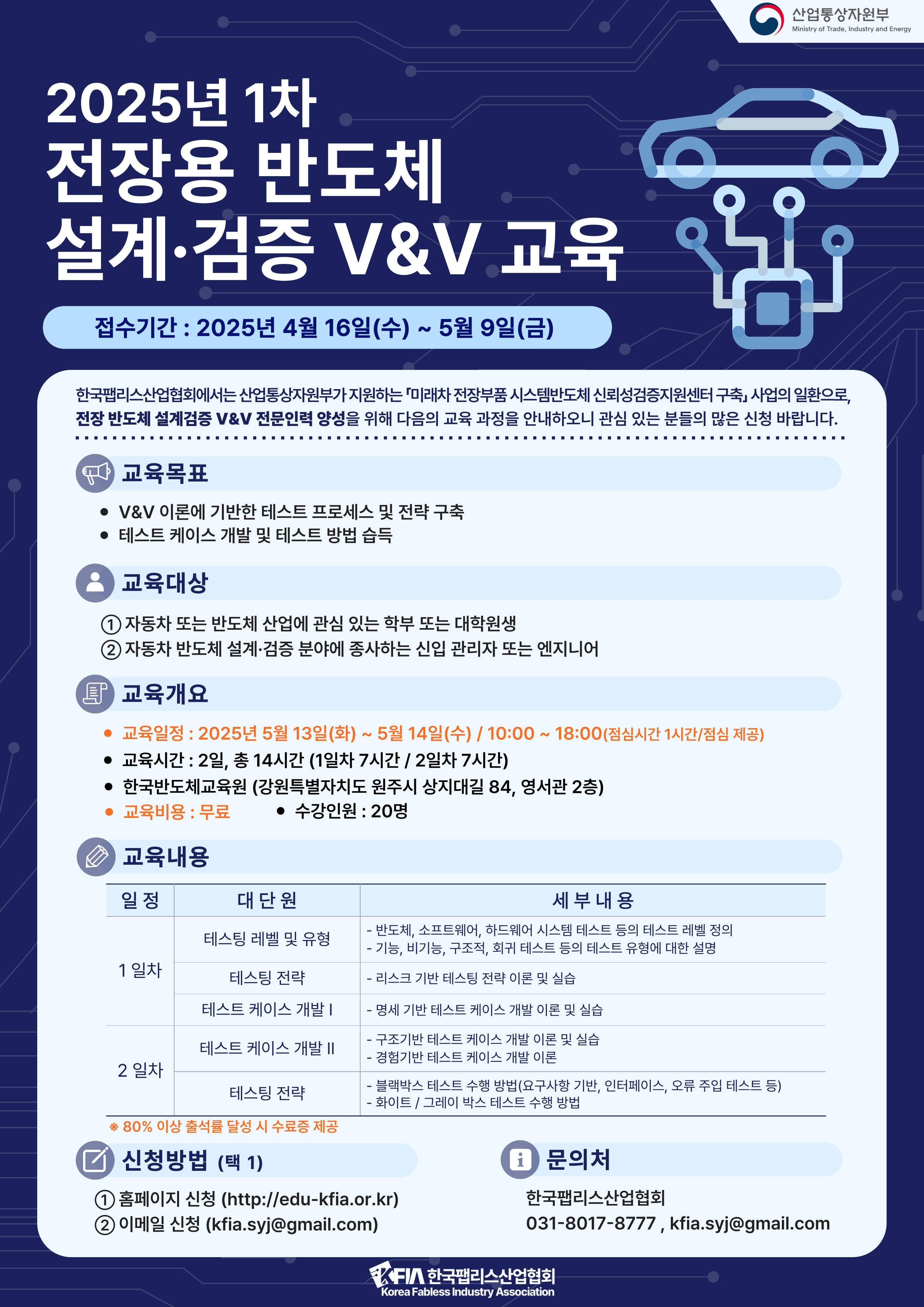 [한국팹리스산업협회] 2025년 1차 전장용 반도체 설계검증 V&V 교육생 모집 공고